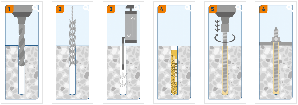 Анкер химический Sormat KEM-VE 12 представляет собой стеклянную ввинчиваемую, герметичную капсулу со смолой на основе винилэстера для прочного и чистого крепления в зоне сжатого бетона. Применяется для крепления шпилек в просверленные отверстия. Переносит динамические нагрузки. Температурная стойкость составляет от -40 °C до +80 °C.
