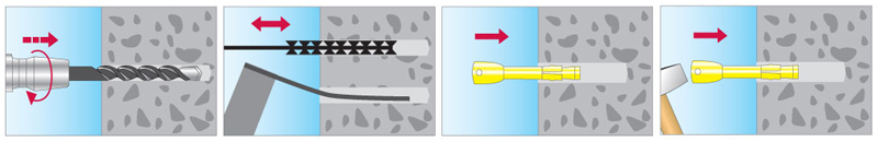 Также анкер для бетона 6*60 мм включает в себя втулку с продольной прорезью и шипами, которые обеспечивают надежное сцепление с поверхностью заранее подготовленного отверстия.