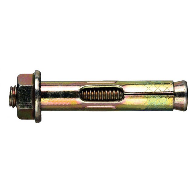 Анкер распорный с гайкой Хортъ 10х125 мм 10 шт представляет собой сложное крепежное изделие, изготовленное из составных частей: распорной гильзы, которая так же имеет рассечения для упрощения анкеровки, стальной шпильки с расширяющейся частью снизу и резьбой сверху на которую накручивается гайка. Между гайкой и распорной частью имеется шайба, которая значительно упрощает монтаж.