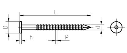 Благодаря наличию поперечных насечек вдоль стального стержня данный метиз способен обеспечивать довольно прочное соединение даже слоёв из древесины мягких пород и древесностружечных плит. Гвозди строительные ершеного типа имеют конусный подголовник, который при забивании расклинивается в отверстии. Обладают плоской головкой, которая позволяет замаскировать место соединения.