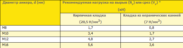 * нагрузки приводятся, как справочные и требуют уточнения в каждом конкретном случае, в зависимости от материала основания.