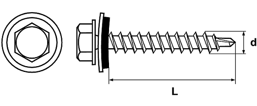Специальная форма сверлового наконечника обеспечивает быстрый и качественый монтаж. Использование прокладки EPDM дает высокую степень герметизации соединения при перепадах температур от -50°С до +150°С на срок до 30 лет. Она играет важную роль не только компенсатора температурных деформаций, а также герметизирующего уплотнителя. Прокладка спрессована в виде шайбы. Для изготовления используется специальный модифицированный искусственно каучук под названием EPDM.