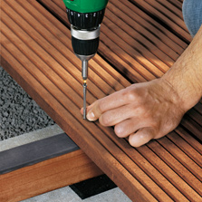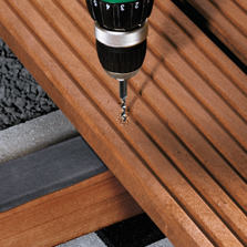 Террасную доску и лаги предварительно просверлить сверлом Ø 4,1/6,5 ммпри максимальных оборотах дрели (ок. 3.000 об/мин.)