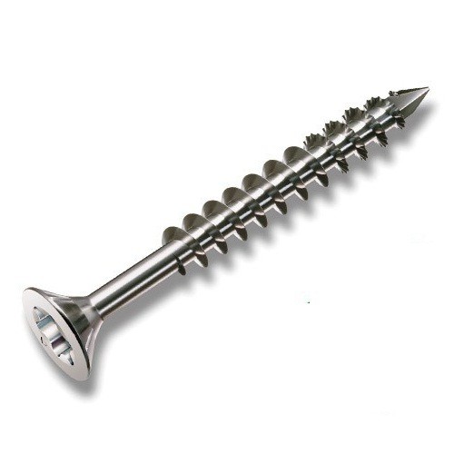 Spax - идеальный шуруп для деревянной террасы. Саморез имеет цилиндрическую головку, которая легко проникает в древесину. При вкручивании древесина не раскалывается, поверхность не портится и не нужно каких-нибудь дополнительных усилий. Фиксирующая резьба обеспечивает плотное прилегание деревянных элементов - верхняя доска не прогибается.