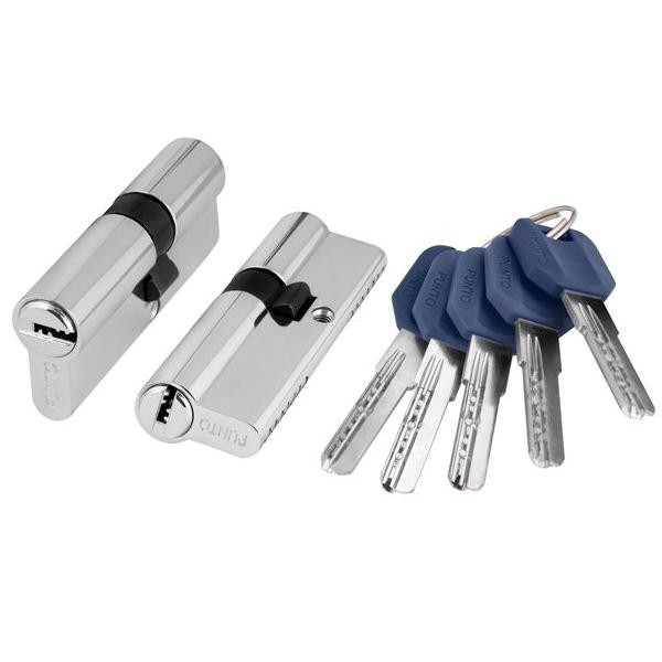 Цилиндровый механизм имеет стандартизированный размер, благодаря чему легок и быстр в замене. Работа системы проста, ключ осуществляют поворот язычка цилиндрового механизма (рычаг), который запускает работу засова. Стандартный размер имеет только ширина механизма, длина подбирается в зависимости от толщины двери. Устанавливается в отверстие, выполненное внутри корпуса, если полотно сплошное, или в случае полой металлической двери вкладывается в специальный короб, с последующей лицевой отделкой.