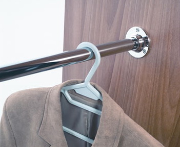 Это по сути круглая хромированная труба диаметром 25 мм. На нее вешают предметы гардероба на плечиках, что существенно облегчает поиск нужного предмета и обеспечивает удобство его размещения. Круглая конструкция может выдерживать большие нагрузки.