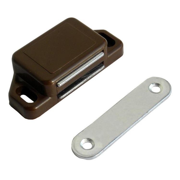 Основная отличительная особенность, которой обладает магнитная защёлка — уникальный способ удержания створки закрытой. Принцип работы такого приспособления прост: дверь удерживается в закрытом положении при помощи магнитного устройства.