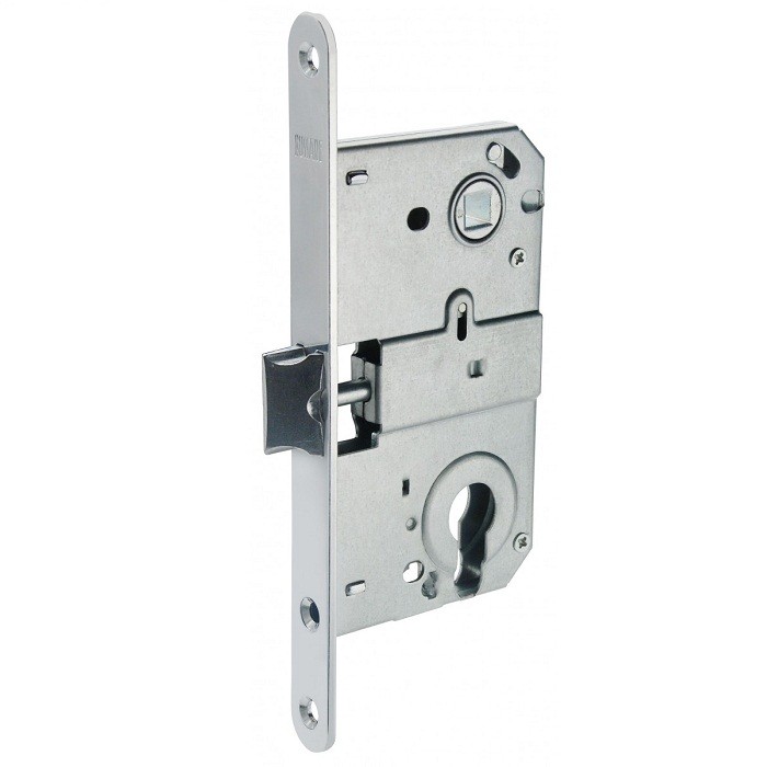 Защелка Bussare BUS 2085 монтируется в полотно межкомнатной двери и позволяет плотно закрыть её, защитив комнату от чужих глаз и сквозняков. Это специальный механизм, обеспечивающий мягкое закрывание и открывание дверной конструкции. Устройство имеет подвижный язычок, который цепляется за ответную планку. Защелка приводится в действие дверной ручкой. Защелка предназначена для установки под ключевой цилиндр.