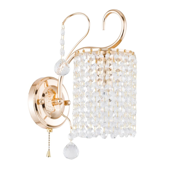 Бра Leona FR127-01-G оформлено в стиле арт-деко и легко сочетается с другими элементами обстановки. Симпатичные хрустальные плафоны прозрачного цвета прекрасно смотрятся с золотой металлической арматурой. Этот светильник способен создавать освещенную зону площадью в 2 кв. м, поскольку обладает мощностью в 40 Вт. Цоколь лампочек – 1xE14