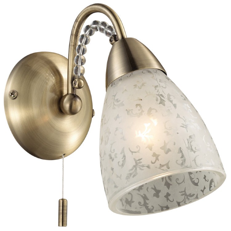 Классика никогда не выйдет из моды! Корпус из благородной бронзы, удобный шнурок-выключатель, плафон из светлого матового стекла с актуальным растительным рисунком - красивое и практичное бра Mariot 2541/1W. Светильник придется кстати как в гостиной, так и в спальне, делая ваши вечера необычайно светлыми и уютными. Устройство осветит помещение площадью 2,2 кв. м. Производитель рекомендует использовать для устройства лампы накаливания с цоколем E14.
