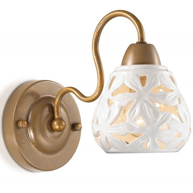 Цветочная тема в современном интерьере особенно актуальна, и дизайнеры Odeon Light знают об этом. Бра Mirta 2659/1W – одно из незаурядных доказательств этому. Белая керамика, из которой выполнен ажурный плафон, смотрится очень эстетично. Кажется, что лампа одета в изящное кружево ручной работы. Ажурные цветы, словно сросшиеся лепестками друг с другом, пропускают достаточно света, чтобы заполнить им даже просторное помещение. Элегантные цветочные колокольчики выглядят еще нежнее в сочетании с изгибами металлической арматуры. На фоне коричневого глянца матовое стекло ослепляет белизной.
