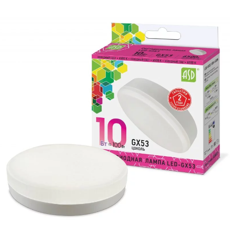 Лампа светодиодная ASD Standard GX53 10W 6500К выполнена в форме таблетки. Предназначена для замены энергосберегающих люминесцентных ламп GX с цоколем GX 53 и позволяет использовать лучшие преимущества светодиодов: высокое значение энергоэффективности, направленность, высокое значение CRI и долговечность, малая степень нагрева и высокая травмобезопасность.