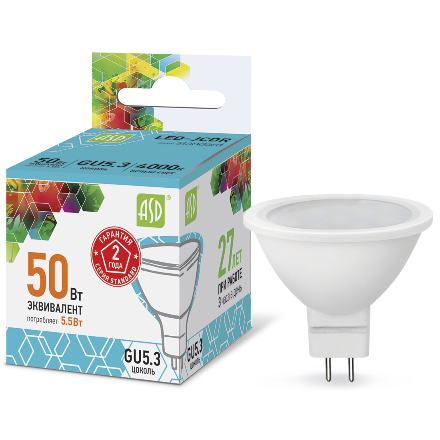 Светодиодная лампа ASD Standard JCDR 5,5W GU5.3 4000К – светодиодная лампа направленного света. Представляет собой безопасный, эффективный и экологичный источник освещения. Предназначена для замены галогенной лампы JCDR в люстрах и светильниках. Такие лампы рекомендуются для создания декоративной подсветки и подходят для большинства направленных светильников (софитов, даунлайтов) с цоколями GU5.3.