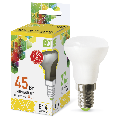 Светодиодная лампа ASD Standard R39 5W Е14 3000К – светодиодная лампа направленного света в матовой колбе рефлекторной формы. Представляет собой безопасный, эффективный и экологичный источник освещения. Предназначена для замены рефлекторных ламп накаливания. Такие лампы рекомендуются для точечной подсветки и акцентного освещения.