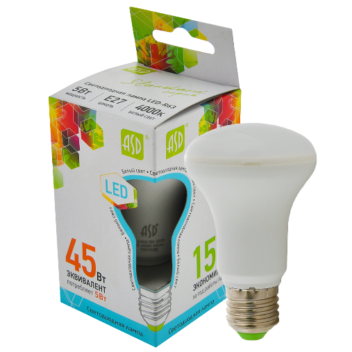 Светодиодная лампа ASD Standard R63 5W Е27 4000К – светодиодная лампа направленного света в матовой колбе рефлекторной формы. Представляет собой безопасный, эффективный и экологичный источник освещения. Предназначена для замены рефлекторных ламп накаливания. Такие лампы рекомендуются для точечной подсветки и акцентного освещения.