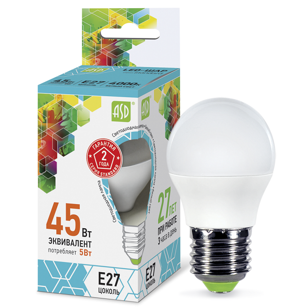 Светодиодная лампа ASD Standard Шар 5W Е27 4000К обладает матовой колбой в форме шара. Это безопасный, эффективный и экологичный источник освещения. Лампа излучает мягкий комфортный свет, широко применяется в люстрах и светильниках с маленькими плафонами. Идеальный вариант для декоративного освещения в жилых помещениях – гостиных, обеденных зонах, спальнях и коридорах.