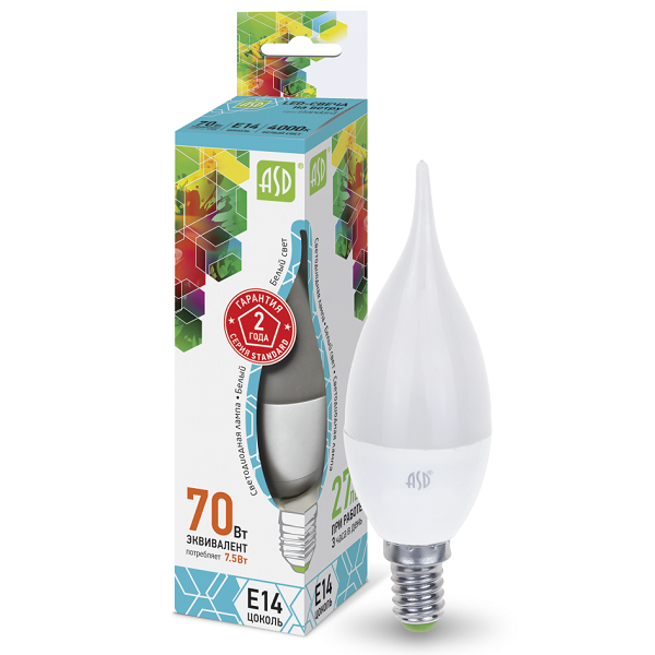 Светодиодная лампа ASD Standard Свеча на ветру 7,5W Е14 4000К обладает матовой колбой и изящным внешним видом. Это безопасный, эффективный и экологичный источник освещения. Элегантная форма лампы подчеркнет красоту Вашей люстры, а мягкое уютное свечение позволит создать комфортную атмосферу. Идеальный вариант для декоративного освещения в жилых помещениях – гостиных, обеденных зонах, спальнях и коридорах.