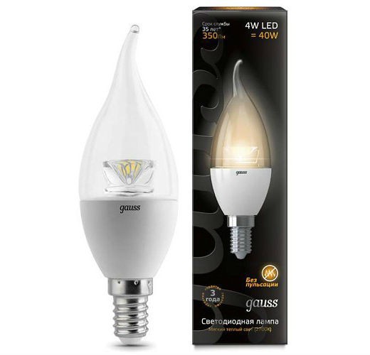 Свечеобразная светодиодная лампа Gauss 3Вт – это миниатюрная труженица с большой светоотдачей. Замена 40-ватным лампам накаливания дает световой поток в 350Люмен – сокращение затрат и поддержания стабильного света без мигания. Светодиоды загораются сразу, не требуют прогревов, не перегреваются, благодаря конструкции радиатора из пластика и алюминия. Трехватная лампа способна работать без перерывов и на протяжении 35 тыс. часов, излучая свет с цветовой температурой 2700К – мягкий, теплый и соответствующий пламени. Колба, выполненная с характерным завитком, имитирует живое пламя для хрустальных люстр – практичная красота для приборов с цоколями E14.