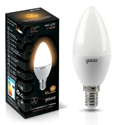 Свечеобразная лампа Gauss на 4W идеально подойдет для декоративных светильников, обеспечит мягкий сверхтеплый свет с цветовой температурой 2700 К и приятные переливы на стенах при наличии хрустальных стеклянных элементов. Лампа устанавливается в патрон Е14 и работает с обычным выключателем без диммера. Ресурса хватает на 35 тысяч часов, что в 35 раз эффективнее по сравнению с обычными лампами накаливания на 40W. Лампа имеет компактные габариты и световой поток 350 лм, что при низкой мощности доказывает ее энергоэффективность.
