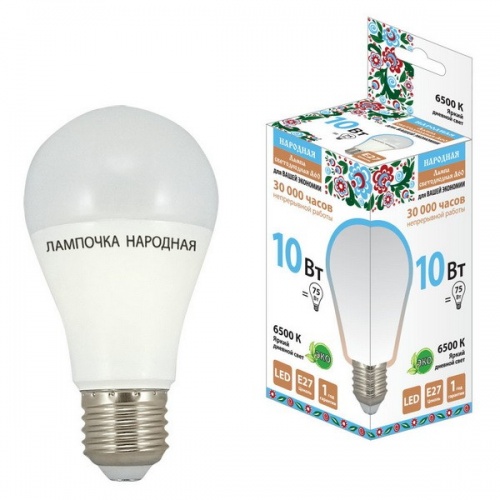Лампа светодиодная TDM SQ0340-0119 НЛ-LED-A60-10 Вт-230 В-6500 К-Е27 серия Народная - предназначена общего освещения и местной подсветки. Лампы подходят для всех типов светильников с патроном Е27 и служат заменой ламп накаливания и компактных люминесцентных ламп.