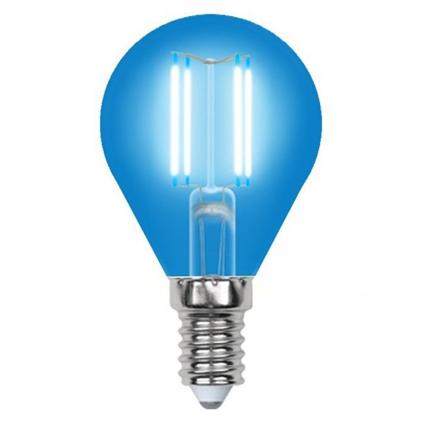 Светодиодная лампочка в форме шара с цоколем E14 и размерами 70 мм по высоте и диаметром в 45 мм обладает мощностью в 5 W, благодаря чему она может осветить 1,7 кв. м. Ориентировочный срок службы заявленный производителем Uniel составляет 25000 ч.