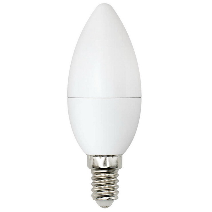 Светодиодная лампочка в форме свечи с цоколем E14 и размерами 100 мм по высоте и диаметром в 37 мм обладает мощностью в 6 W, благодаря чему она может осветить 3 кв. м. Цветовая температура – 4000 К, т.е. белый свет, подходящий для рабочего настроя (не рекомендуется для детской комнаты). Ориентировочный срок службы заявленный производителем Uniel составляет 30000 ч.