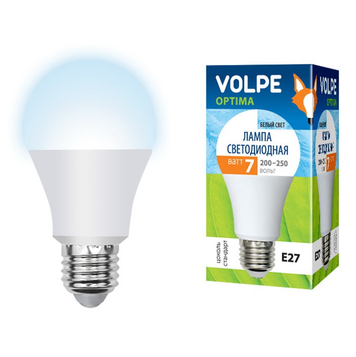 Лампа светодиодная Volpe Optima LED-A60-7W/NW/E27/FR/O является аналогом 60 Вт лампы накаливания. Имеет матовую колбу формы "А" (груша) и стандартный цоколь Е27.