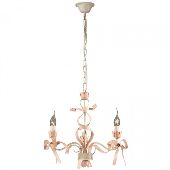 Люстра Odeon 2527/3 нежна и изящна. Ее основной декор – узкие ленты нежно-розового цвета, обвивающие арматуру люстры, словно полоски серпантина. Подвес и рожки люстры буквально упрятаны в узких полосках металлической ленты. Под каждым плафоном лента красиво завязана, образуя большой бант в форме восьмерки.