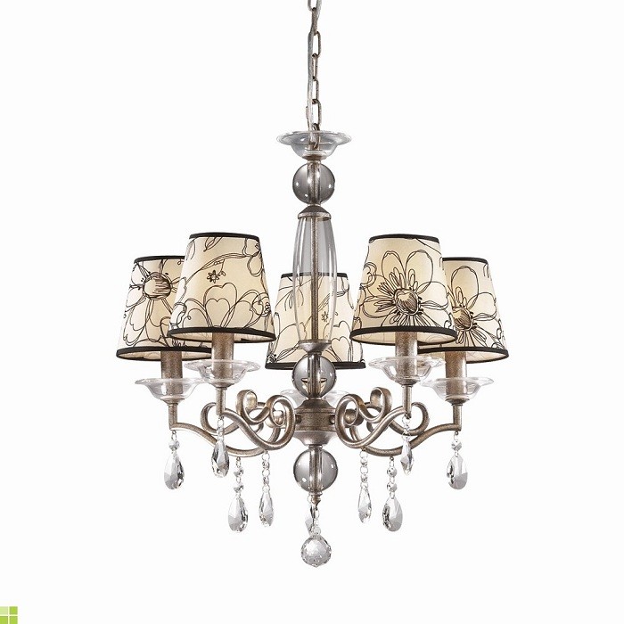 Подвесная люстра 2275/5 Lika выполнена в соответствии со всеми стандартами качества по последним технологиям производства. Список достоинств данной люстры довольно обширен: высокая функциональность, прекрасный внешний вид, долговечность, высокое качество сборки и прочность материалов изготовления. Основание изготовлено из металла, а плафоны – из ткани. Дизайн данной модели выполнен в рамках стиля прованс, для него характерны продуманность и приятная цветовая гамма. Мощность светильника также заслуживает всяческих похвал: при использовании лампочек с цоколем 5хE14 она достигает 200 Вт. Благодаря этому, можно создать оптимальную степень освещенности на площади размером до 10 кв.м.