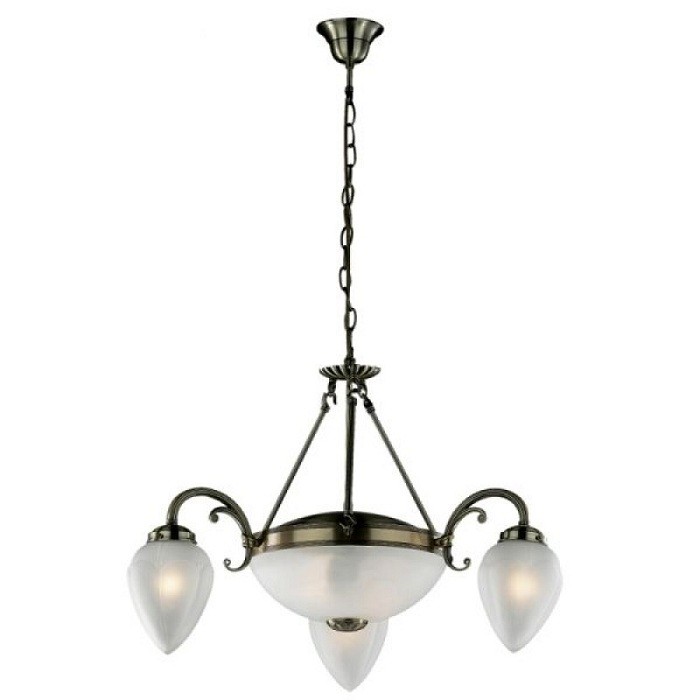 Арматура люстры выполнена под темную бронзу. Ее поверхность декорирована различными элементами, такими как рифление, орнамент. Рожки овалов-плафонов имеют форму полукольца, украшенного завитушками, которые делают светильник особенно интересным.