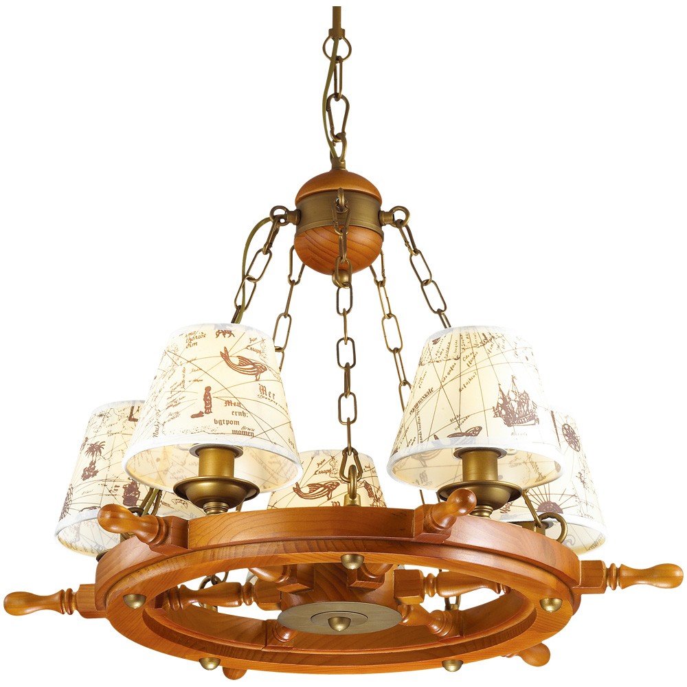 Подвесная люстра 2769/5 Rotar, выполнена в соответствии со всеми стандартами качества по последним технологиям производства. Основание изготовлено из металла. Дизайн данной модели выполнен в рамках современного и морского стиля, для него характерны продуманность и приятная цветовая гамма. Декор изделия оформление с использованием элементов в форме штурвала. Мощность светильника также заслуживает всяческих похвал: при использовании лампочек с цоколем 5хE14 она достигает 200 Вт. Благодаря этому, можно создать оптимальную степень освещенности на площади размером до 10 кв.м. В первую очередь, данная модель предназначена для размещения в детской, однако, использовать ее можно и в других помещениях.
