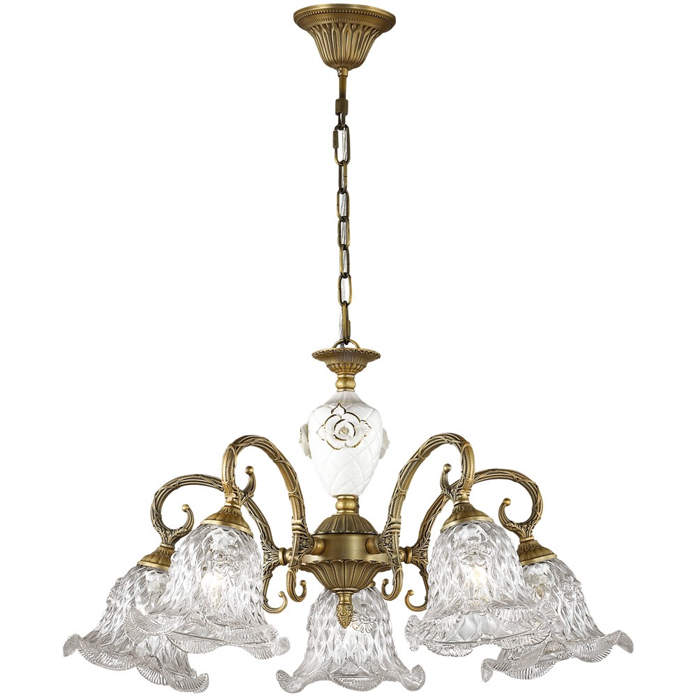 Люстра 2884/5 серии Victori выполнена в бронзовом цвете, украшена керомическим декором в виде розы, плафоны из стекла. Дизайн данной модели выполнен в рамках стиля классика, для него характерны продуманность и приятная цветовая гамма. Мощность светильника также заслуживает всяческих похвал: при использовании лампочек с цоколем 5хE14 она достигает 300 Вт. Благодаря этому, можно создать оптимальную степень освещенности на площади размером до 15 кв.м. К тому же высоту люстры можно регулировать, тем самым меняя площадь освещения.
