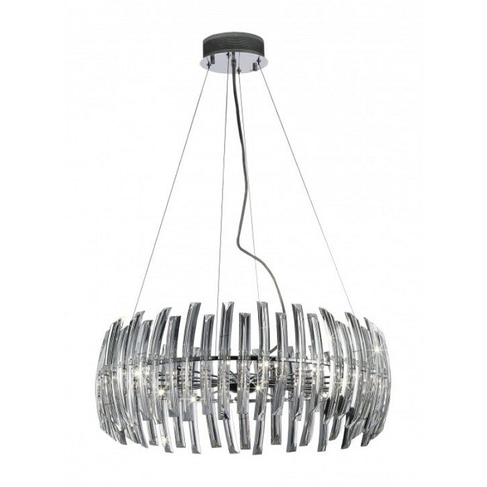 Люстра 1983/12 серии Vinca похожа на сверкающий частокол. Стеклянные призмы, своими силуэтами напоминающие японские клинки, расположились по окружности вокруг геометрического центра люстры, образуя бочкообразную форму. Внутри – двенадцать галогеновых ламп, свет которых преломляется и сверкает на стеклянных гранях.