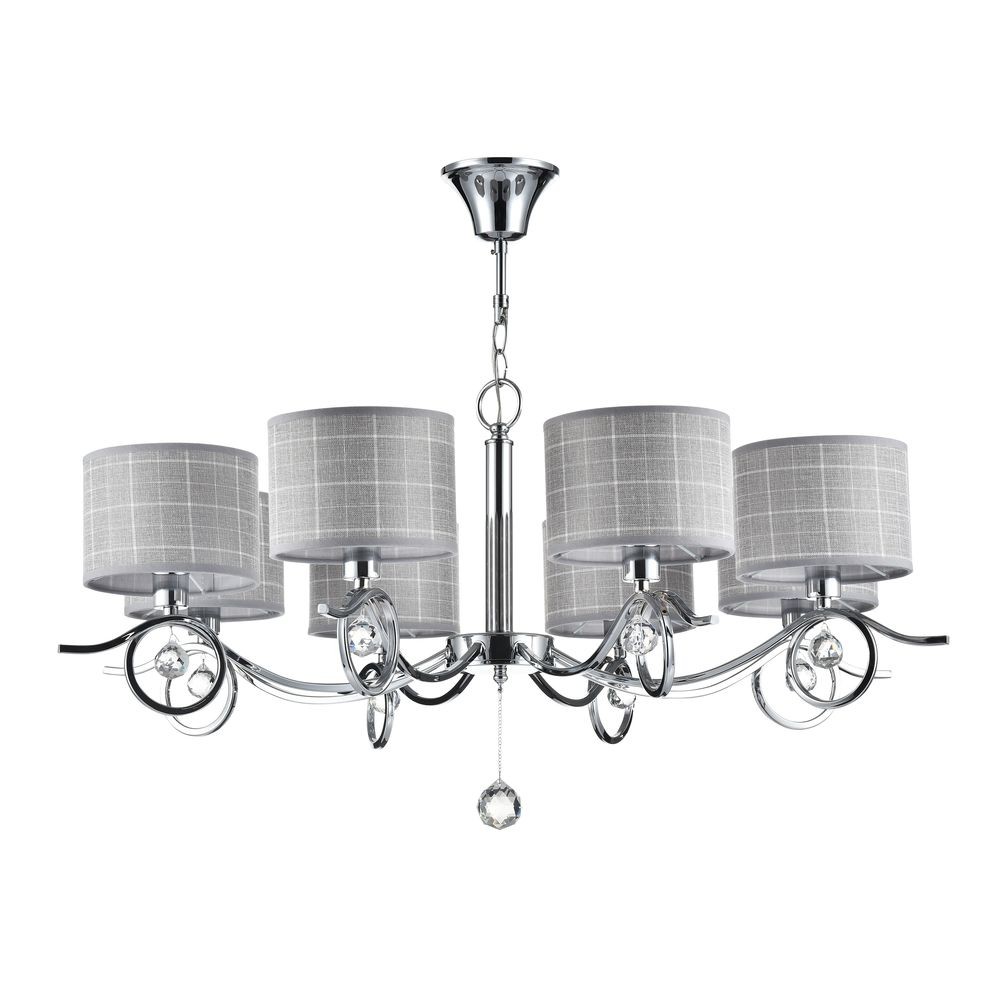 Люстра подвесная Bertrand FR906-08-N с подвесками из хрусталя имеет эффектный декор, исполненный в стиле модерн, и благородную цветовую палитру с использованием хромового и серого оттенков. Светильник рассчитан на освещение площади в 16 кв. м при использовании ламп с цоколем 8xE14 общей мощностью в 320 Вт. Есть возможность подключения диммера, крепление производится на металлический крюк.
