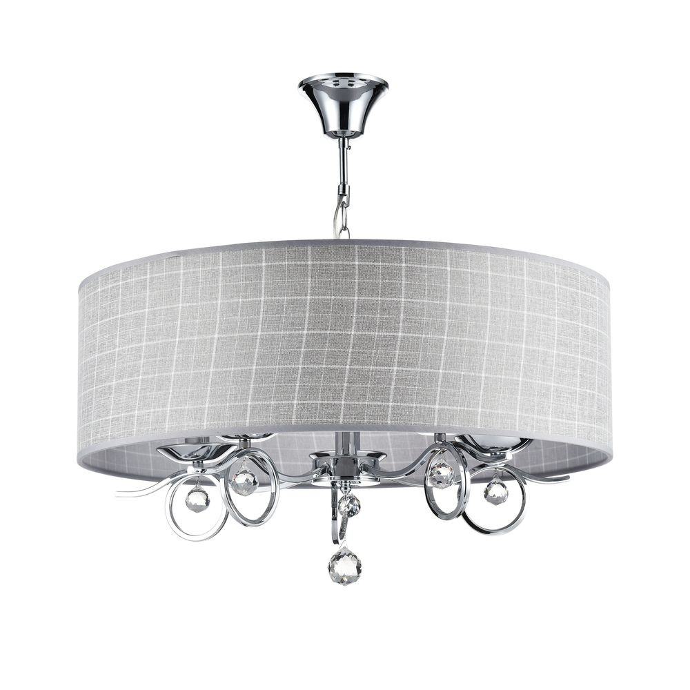 Люстра подвесная BertrandFR906-55-N с подвесками из хрусталя имеет эффектный декор, исполненный в стиле модерн, и благородную цветовую палитру с использованием хромового и серого оттенков. Светильник рассчитан на освещение площади в 10 кв. м при использовании ламп с цоколем 5xE14 общей мощностью в 200 Вт. Есть возможность подключения диммера, крепление производится на металлический крюк.