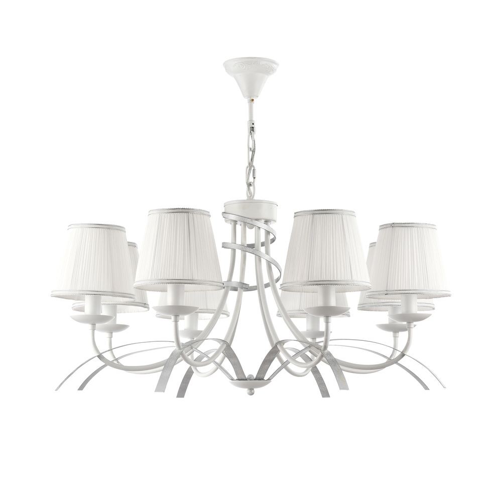 Люстра подвесная Diana FR569-08-W имеет эффектный декор, исполненный в стиле прованс, и благородную цветовую палитру с использованием белого и серебренного оттенков. Светильник рассчитан на освещение площади в 16 кв. м при использовании ламп с цоколем 8xE14 общей мощностью в 320 Вт. Есть возможность подключения диммера, крепление производится на металлический крюк.