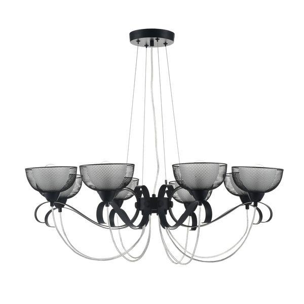 Люстра подвесная Emma FR4905-PL-08-BL оформлена в стиле модерн и легко сочетается с другими элементами обстановки. Симпатичные плафоны из металла черного и стекла белого цвета прекрасно смотрятся с черной металлической арматурой. Этот светильник способен создавать освещенную зону площадью в 16 кв. м, поскольку обладает мощностью в 320 Вт. Цоколь лампочек – 8xE14.