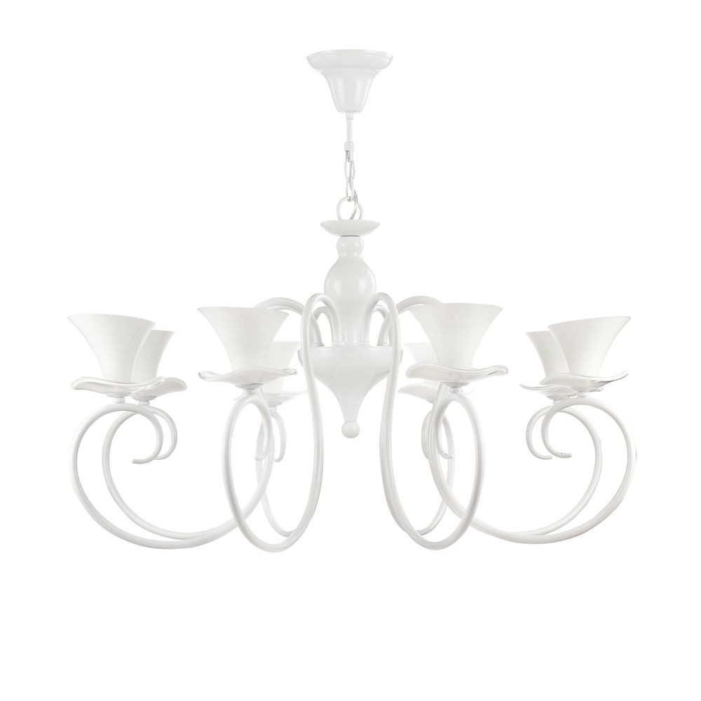 Подвесная люстра Fabre FR001-08-W отлично демонстрирует внимательный подход фирмы к созданию своей продукции. Прибор имеет эффектный декор, исполненный в стиле прованс, и благородную цветовую палитру с использованием белого оттенка. Светильник рассчитан на освещение площади в 16 кв. м при использовании ламп с цоколем 8xE14 общей мощностью в 320 Вт.