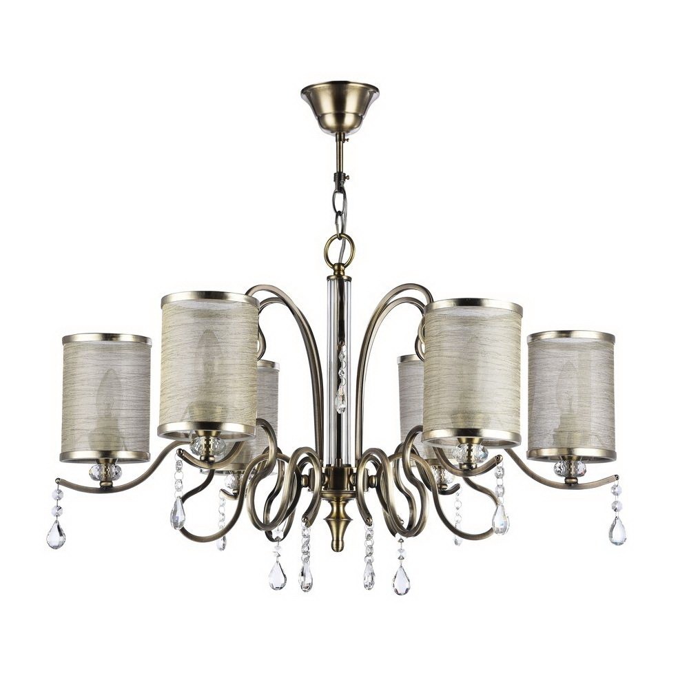 Люстра подвесная FR300-06-R оформлена в стиле арт-деко и легко сочетается с другими элементами обстановки. Симпатичные тканевые плафоны бежевого цвета прекрасно смотрятся с бронзовой металлической арматурой. Абажур выполнен из органзы, конструкция декорирована подвесками из хрусталя. Этот светильник способен создавать освещенную зону площадью в 12 кв. м, поскольку обладает мощностью в 240 Вт. Цоколь лампочек – 6xE14.
