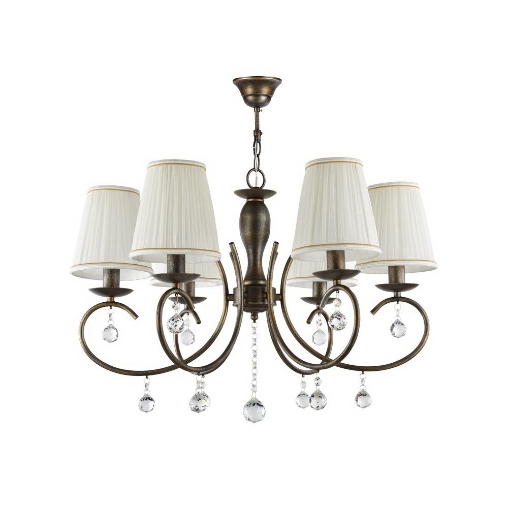 Люстра подвесная FR305-06-R оформлена в стиле арт-деко и легко сочетается с другими элементами обстановки. Симпатичные тканевые плафоны белого цвета прекрасно смотрятся с коричневой металлической арматурой. Абажур выполнен из органзы, конструкция декорирована подвесками из хрусталя. Этот светильник способен создавать освещенную зону площадью в 12 кв. м, поскольку обладает мощностью в 240 Вт. Цоколь лампочек – 6xE14.
