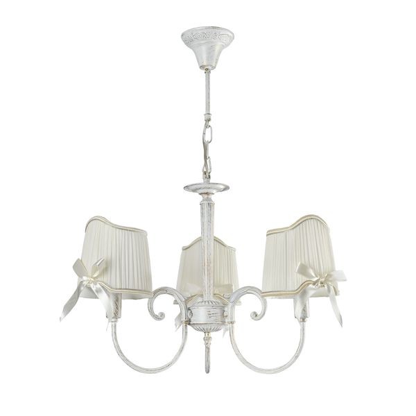Люстра подвесная Kate FR2749-PL-03-WG оформлена в стиле прованс и легко сочетается с другими элементами обстановки. Небольшие бантики на текстильных абажурах, выполненные из атласной тесьмы, - дань популярному стилю "шебби шик". Этот светильник способен создавать освещенную зону площадью в 6 кв. м, поскольку обладает мощностью в 120 Вт. Цоколь лампочек – 3xE14.