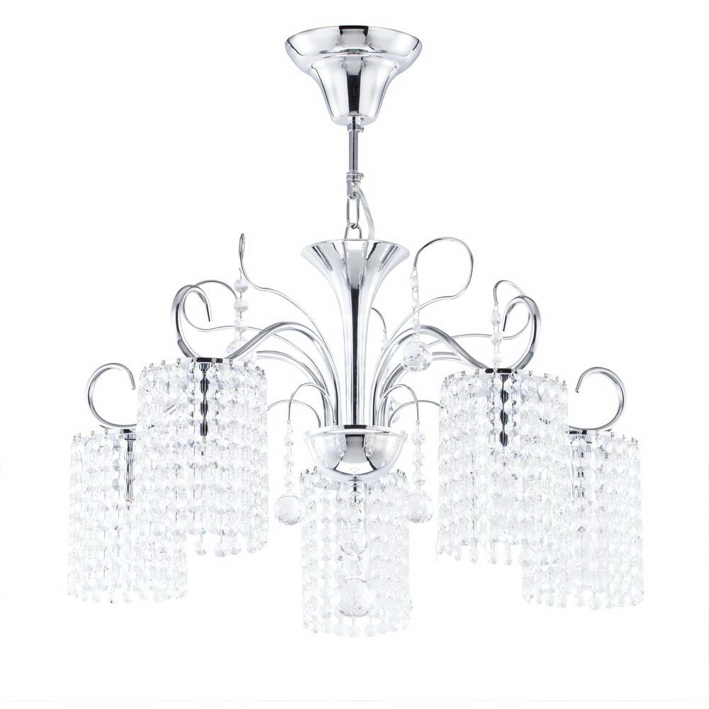 Люстра подвесная FR127-05-G оформлена в стиле арт-деко, выглядит почти воздушной и легко сочетается с другими элементами обстановки. Симпатичные стеклянные плафоны прозрачного цвета прекрасно смотрятся с никелированной металлической арматурой. Этот светильник способен создавать освещенную зону площадью в 10 кв. м, поскольку обладает мощностью в 200 Вт. Цоколь лампочек – 5xE14.