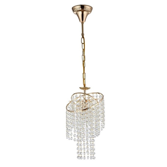 Люстра подвесная FR129-01-G оформлена в стиле арт-деко, выглядит почти воздушной и легко сочетается с другими элементами обстановки. Симпатичные стеклянные плафоны прозрачного цвета прекрасно смотрятся с золотой металлической арматурой. Этот светильник способен создавать освещенную зону площадью в 3 кв. м, поскольку обладает мощностью в 60 Вт. Цоколь лампочек – 1xE27.