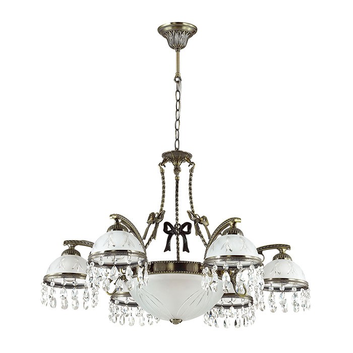 Люстра подвесная 2989/8A серии Avifa оформлена в классическом стиле. Люстра состоит из стеклянных плафонов с металлической окантовкой, украшенной хрусталем, и классической бронзовой арматуры, дополненной изящными металлическими элементами. Данная модель сразу привлекает к себе внимание благодаря сиянию хрусталя и классической форме. Необходимо использовать лампы с цоколем E27. Мощность 8x60W позволяет освещать территорию площадью до 24 кв. м ровным, приятным светом.