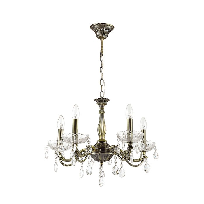 Люстра подвесная 2988/5 серии Candelia оформлена в классическом стиле. Люстра состоит из классической бронзовой арматуры, декорированной хрустальными блюдцами под лампочки-свечки и множеством хрустальных подвесок. Классический блеск и сияние данной модели станут украшением вашего дома. Необходимо использовать лампы с цоколем E14. Мощность 5x40W позволяет освещать территорию площадью до 10 кв. м ровным, приятным светом.