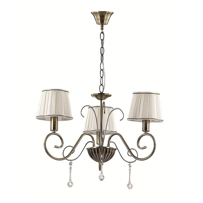 Люстра подвесная 3055/3 серии Emilia оформлена в стиле модерн. Люстра состоит из тканевых абажуров пастельных тонов и арматуры цвета состаренной бронзы, украшенной подвесками из стекла формы "капля". Изящность формы и классика цвета не оставят равнодушным ни одного гостя в вашем доме. Необходимо использовать лампы с цоколем E14. Мощность 3x40W позволяет освещать территорию площадью до 6 кв. м ровным, приятным светом.