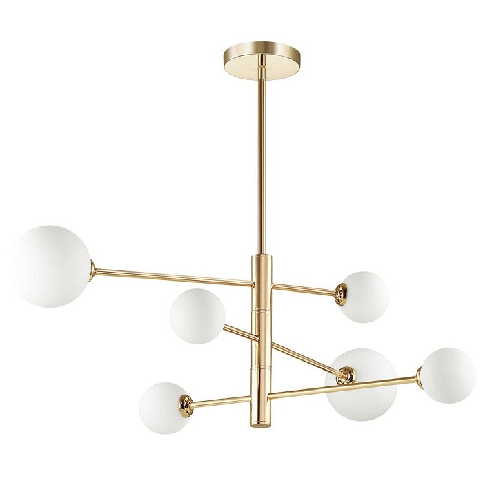 Изящная, лаконичная и строгая - такие эпитеты приходят в голову при первой встрече с люстрой Estelle. Её основание выполнено в роскошном цвете французское золото и дополнено круглыми стеклянными плафонами белого цвета. Люстра Estelle подойдет для украшения компактных спален и просторных гостиных в самых разных стилях и определенно не оставит никого равнодушным.