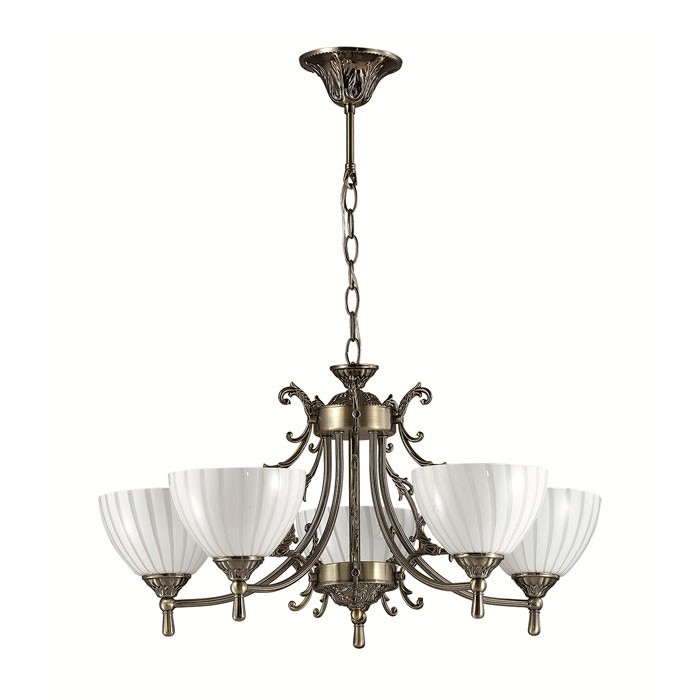 Люстра подвесная 3089/5 серии Liona оформлена в стиле модерн. Люстра состоит из белых глянцевых плафонов с рисунком в полоску и строгой бронзовой арматуры. Отсутствие множества декоративных элементов еще раз подчеркивает, что в строгая классика всегда актуальна. Необходимо использовать лампы с цоколем E14. Мощность 5x40W позволяет освещать территорию площадью до 10 кв. м ровным, приятным светом.