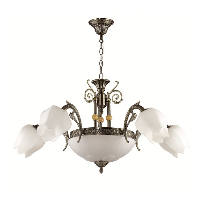 Люстра подвесная 2986/7A серии Lysette оформлена в стиле модерн. Люстра состоит из молочного стеклянного плафона и классической бронзовой арматуры, декорированной ажурными металлическими элементами, деревянными бусинами и центральным матовым стеклом. Данная модель является ярким примером того, что классика никогда не выходит из моды. Необходимо использовать лампы с цоколем E27. Мощность 7x60W позволяет освещать территорию площадью до 21 кв. м ровным, приятным светом.
