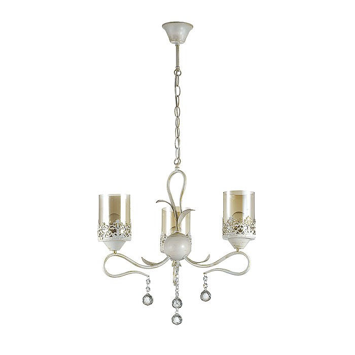 Люстра подвесная 3096/3 серии Mirela оформлена в стиле прованс. Люстра состоит из прозрачных стеклянных плафонов с кружевным металлическим декором и арматуры мягкого белого с золотой патиной цвета, украшенной хрустальными подвесками. Нежная, изящная, воздушная модель несомненно придется по душе абсолютно каждому. Необходимо использовать лампы с цоколем E14. Мощность 3x40W позволяет освещать территорию площадью до 6 кв. м ровным, приятным светом.